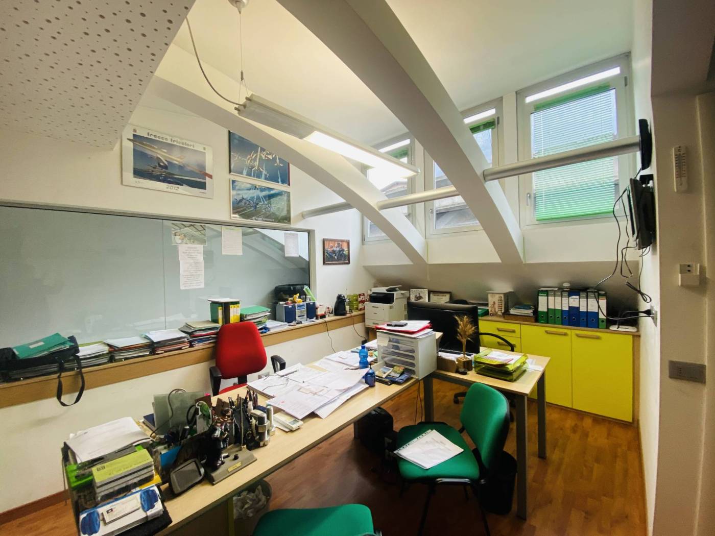 Il soppalco, di circa 120 mq, è composto da magazzino, ufficio, bagno. Aria condizionata a parquet.