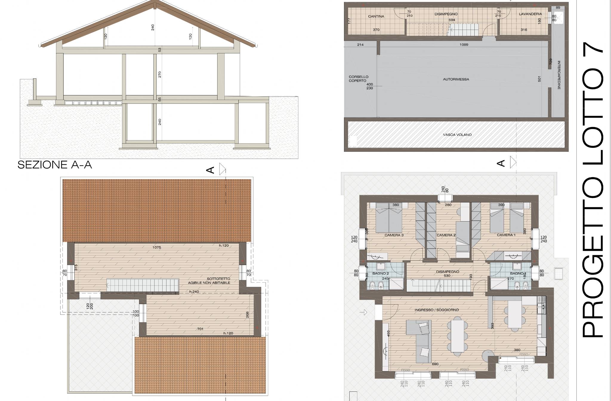Eu. 500.000 per lotto 5 di mq appartamento 154, lastricato 74 mq, locale mansardato a piano secondo 73 mq, box 70 mq, intercapedine 9 mq, giardino di 700mq